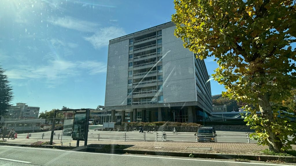 それでは次のクルマ!の前に、腹ごしらえをしましょう。長野市の南西部に向かって走ります。写真は長野県庁の様子。