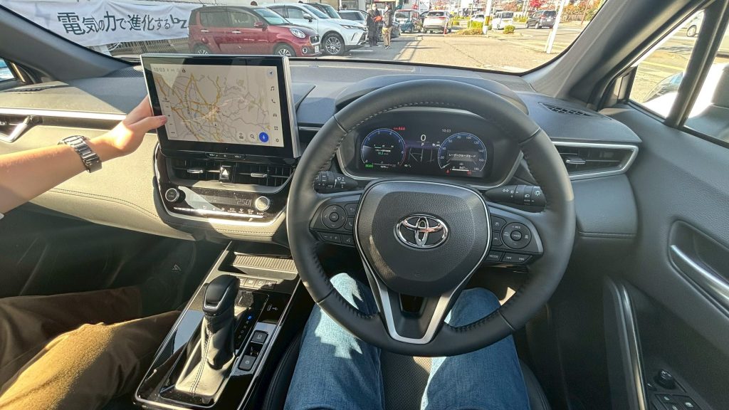 というわけで長野市でまずは1台目。トヨタ・カローラクロスの最新モデルに乗ってみることに。乗りやすいサイズ感、高級感とかっこよさで街中でよく見かけるクルマの最新版です。