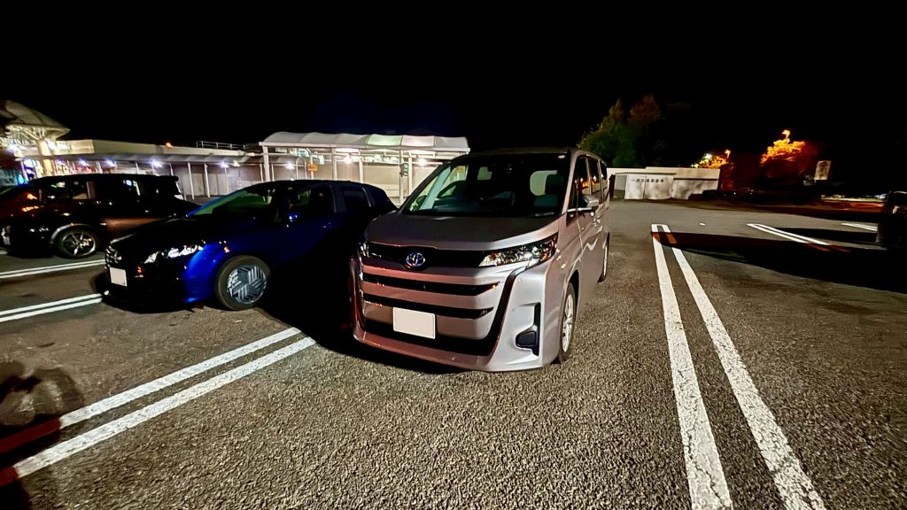 午前3時になり、ようやく宿に到着。いやまあ、クルマに泊まるのだからずっと宿とともに移動してきたのだが。道の駅の車中泊システムは受付が必要なので、深夜でも利用できる無人の車中泊スペースを使わせていただいた。