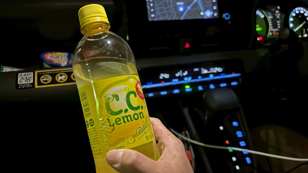 車内はあったかいが昨晩のCCレモンは過冷却レベルまで冷たくなっていた。