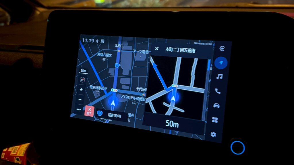 小っ恥ずかしい道を走っていたら、覚えのある地名を発見。全く違う場所でこの地名を眺めるとは思わず、驚いてナビ画面を激写。