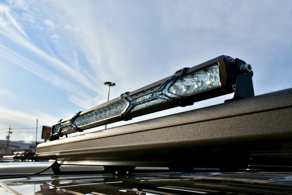 マニアックポイント④ 助手席足元に垂れ下がっていた謎のスイッチ。「何だコレ?」と思いながら押してみると、屋根上のIPF製LEDライトバーが点灯。こんなアメリカンな装備のクルマ、初めて乗りました。