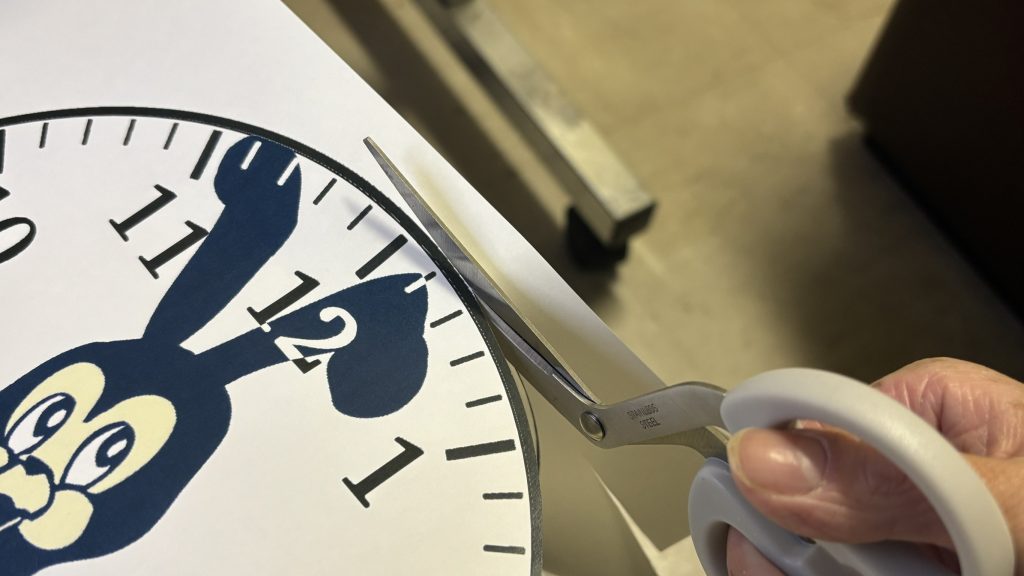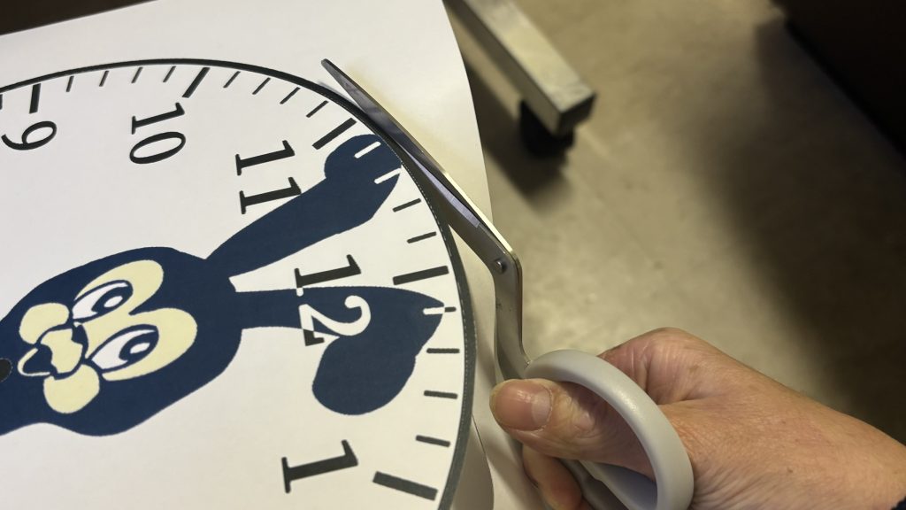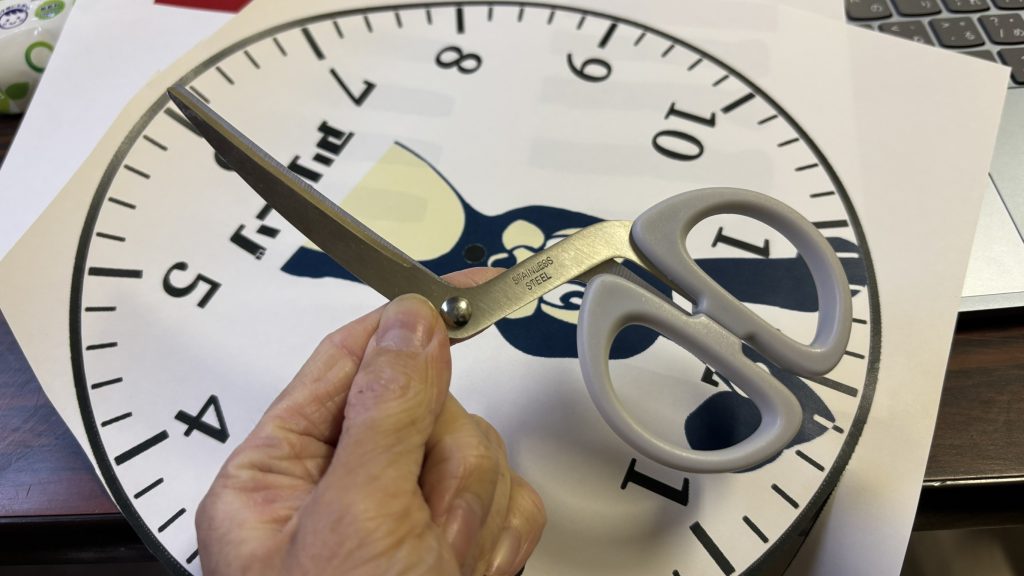 さあ、いったん時計を分解し終わったので印刷したオリジナルデザインの盤面を切り抜いていきます。