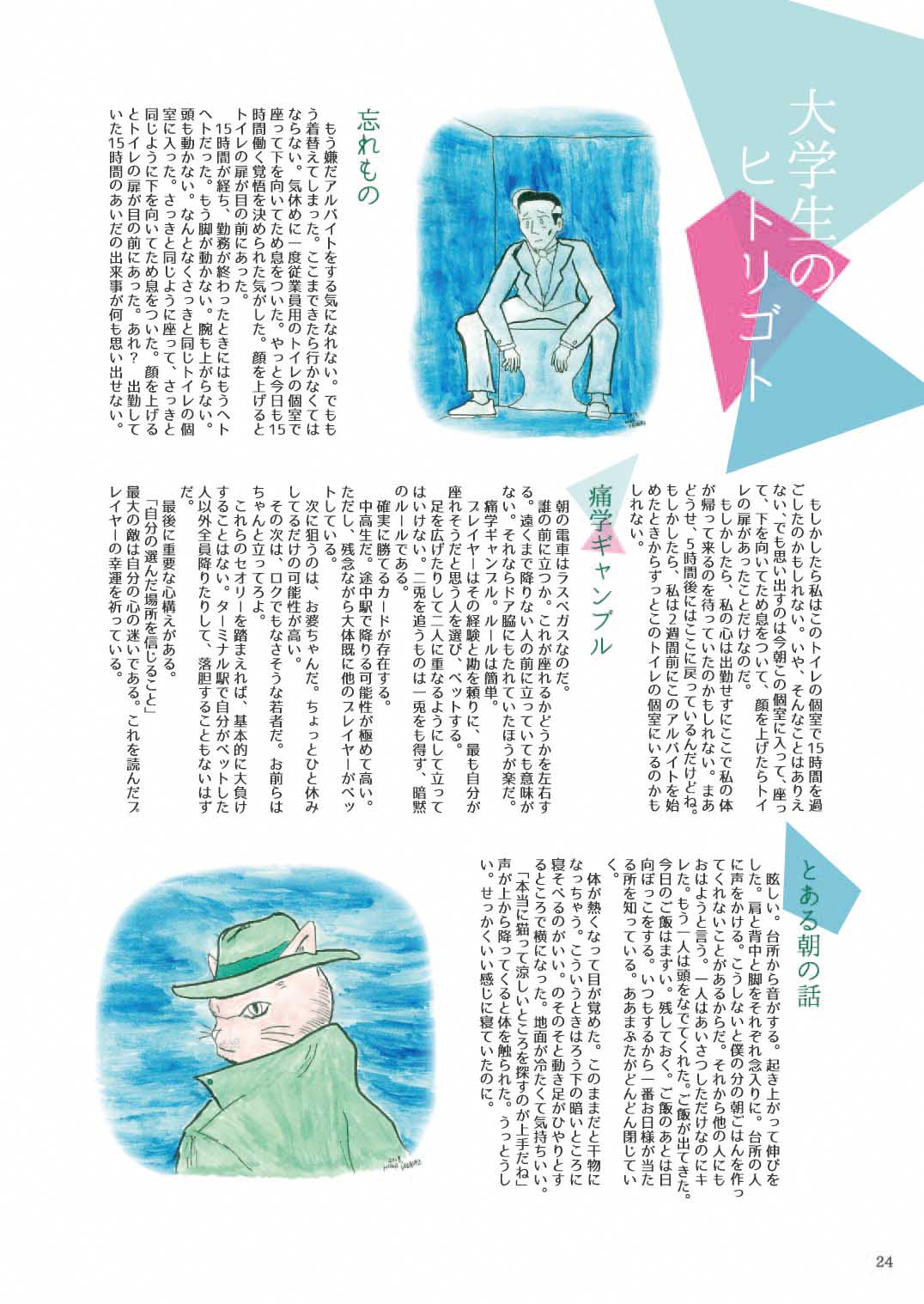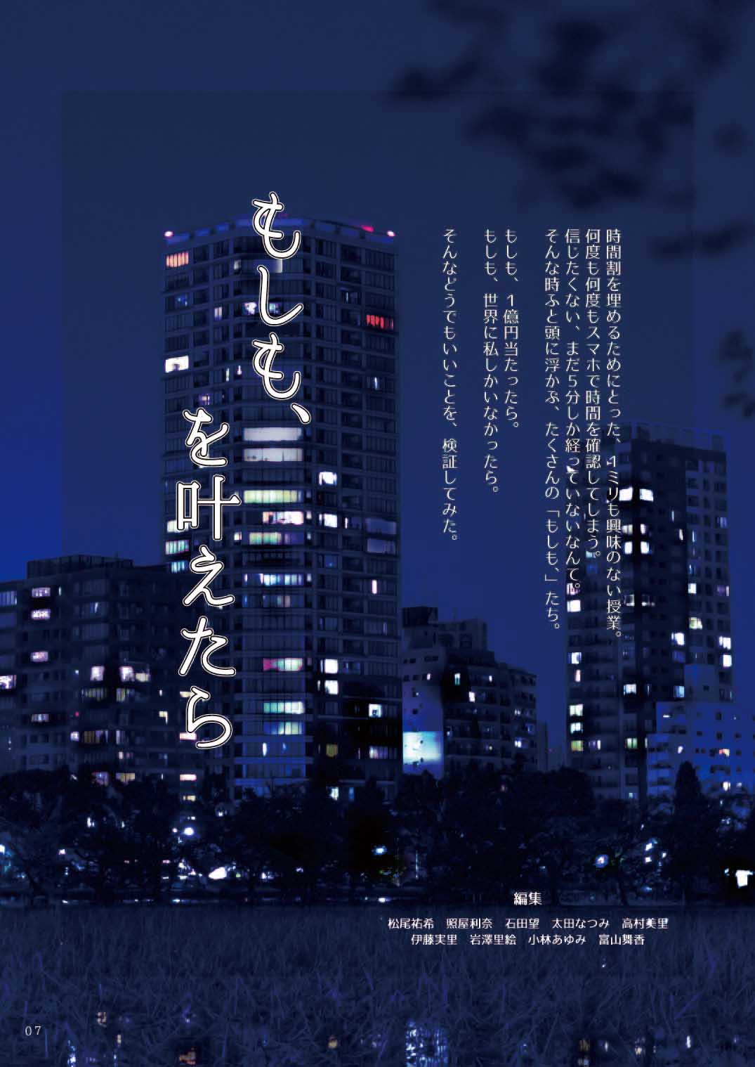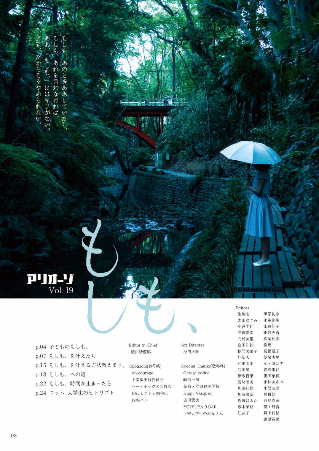 Vol.19 目次 子どものもしも、 もしも、を叶えたら もしも、を叶える方法教えます。 もしも、への道 もしも、時間が止まったら コラム 大学生のヒトリゴト Author カトウソ ペットボトル・ソックス・コレクター。結露防止の為、冬でも必ずペットボトルには靴下を履かせる。 View all posts