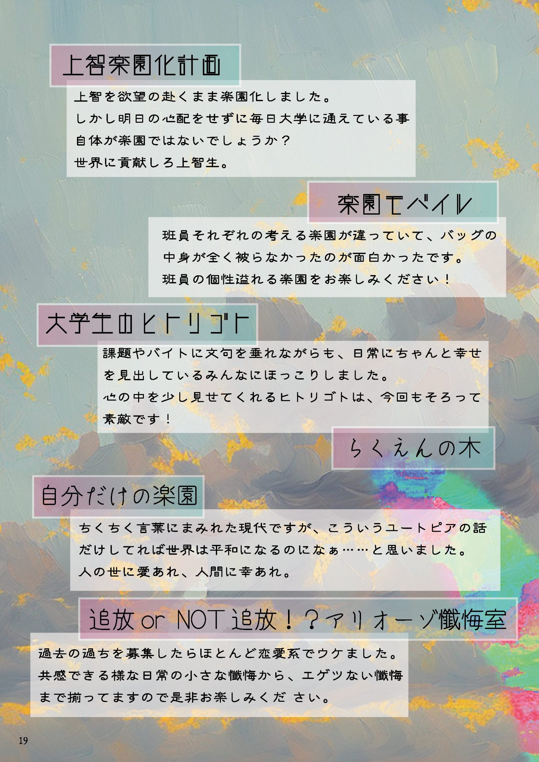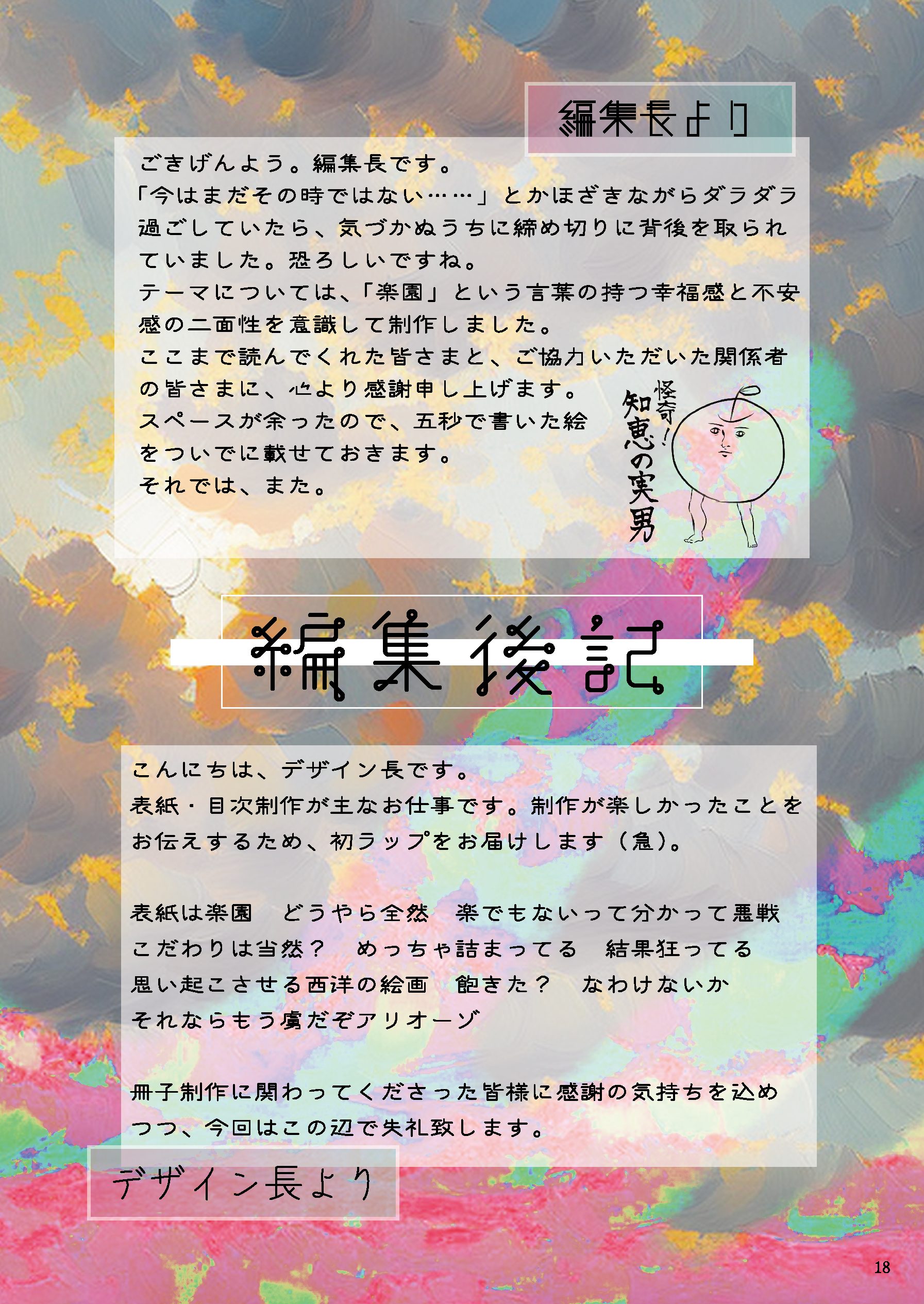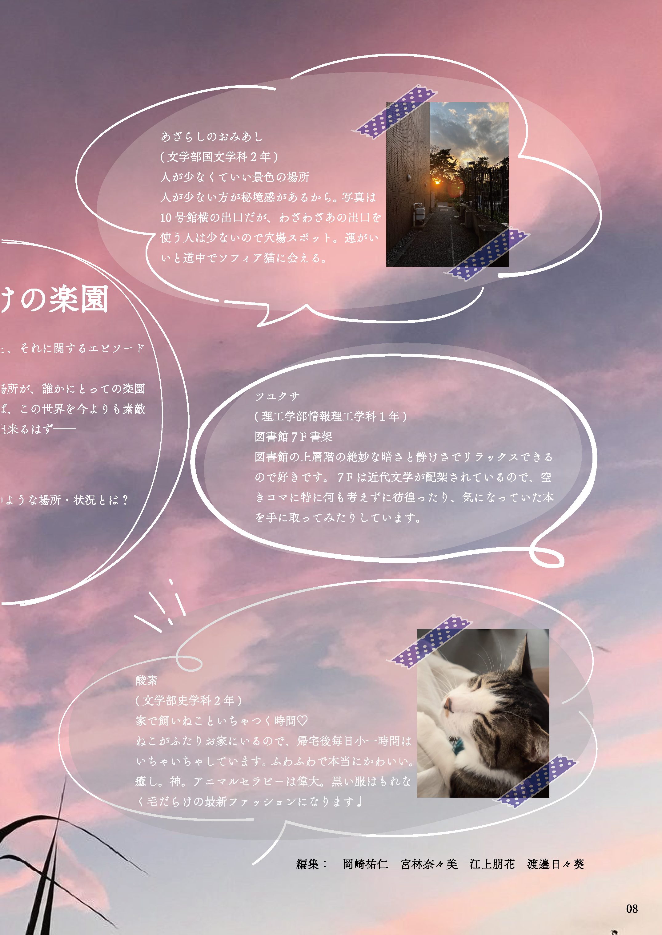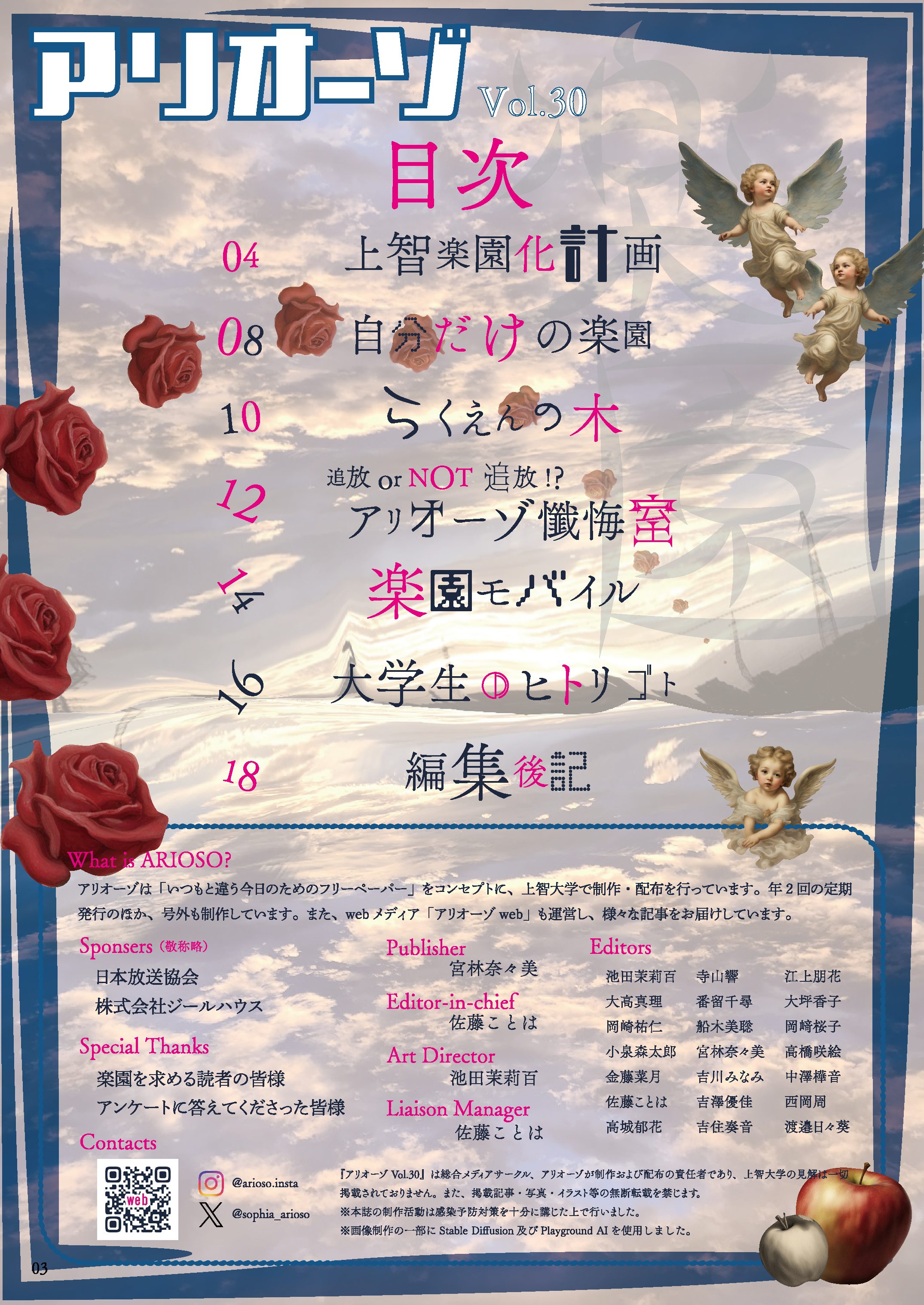Vol.30 目次 上智楽園化計画 自分だけの楽園 らくえんの木 追放 or not 追放!? アリオーゾ懺悔室 楽園モバイル 大学生のヒトリゴト 編集後記 Author castle おばけよりもセミが怖い! 国文学科3年です。 View all posts