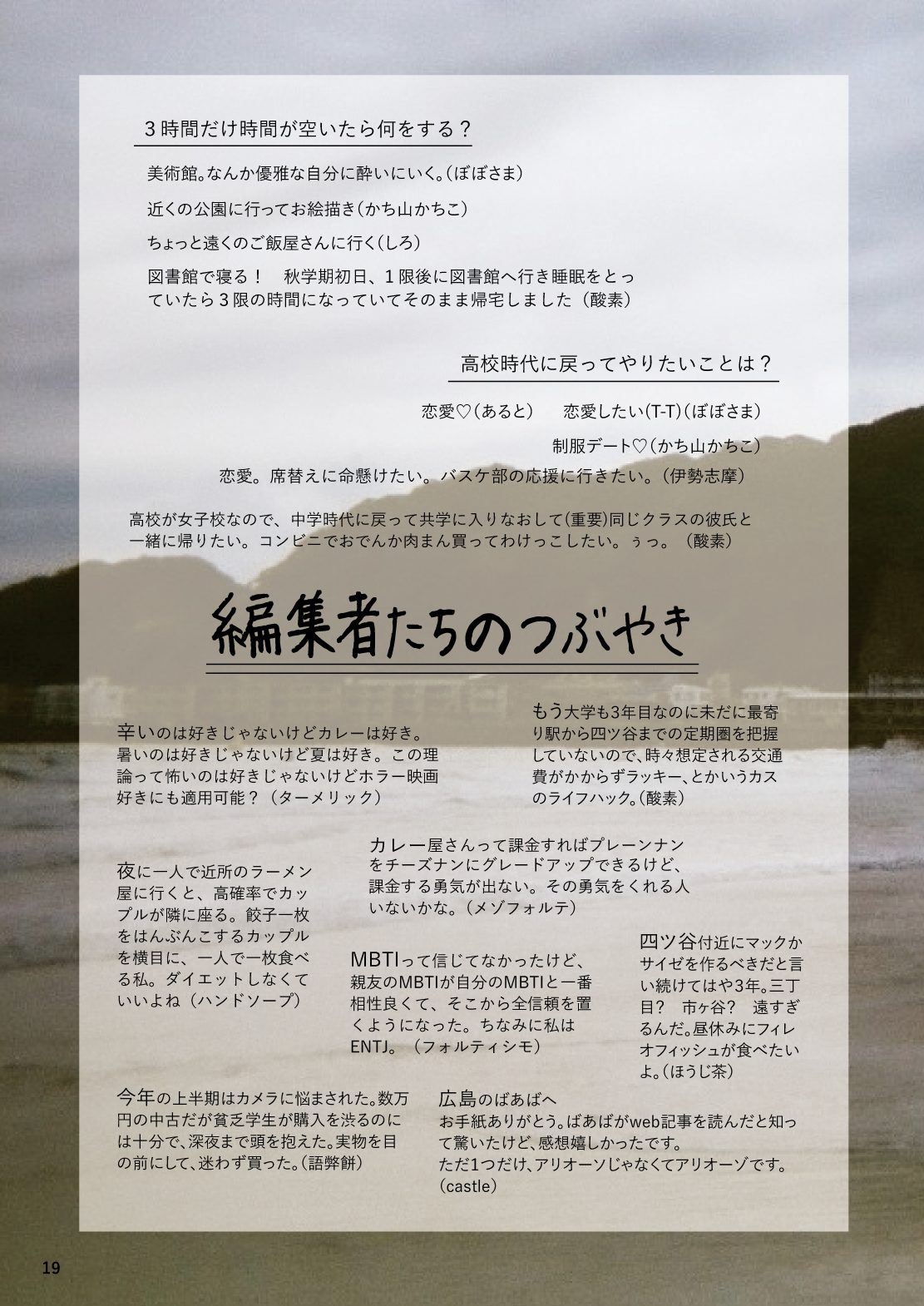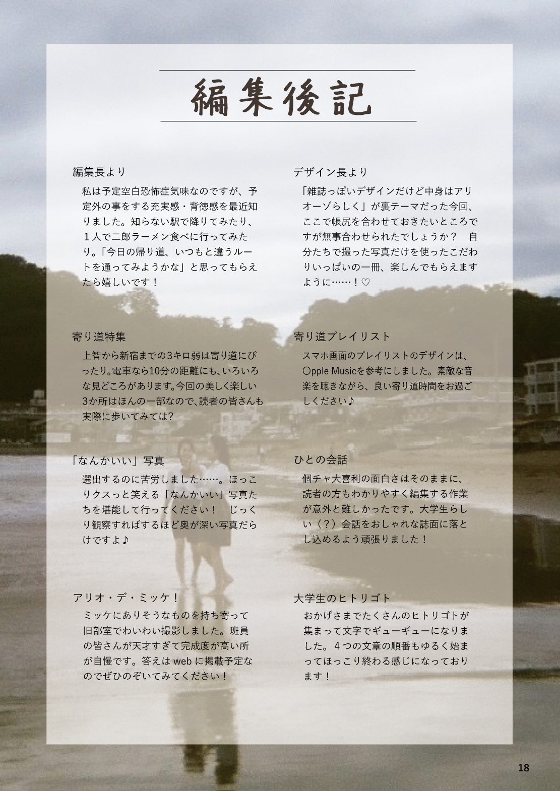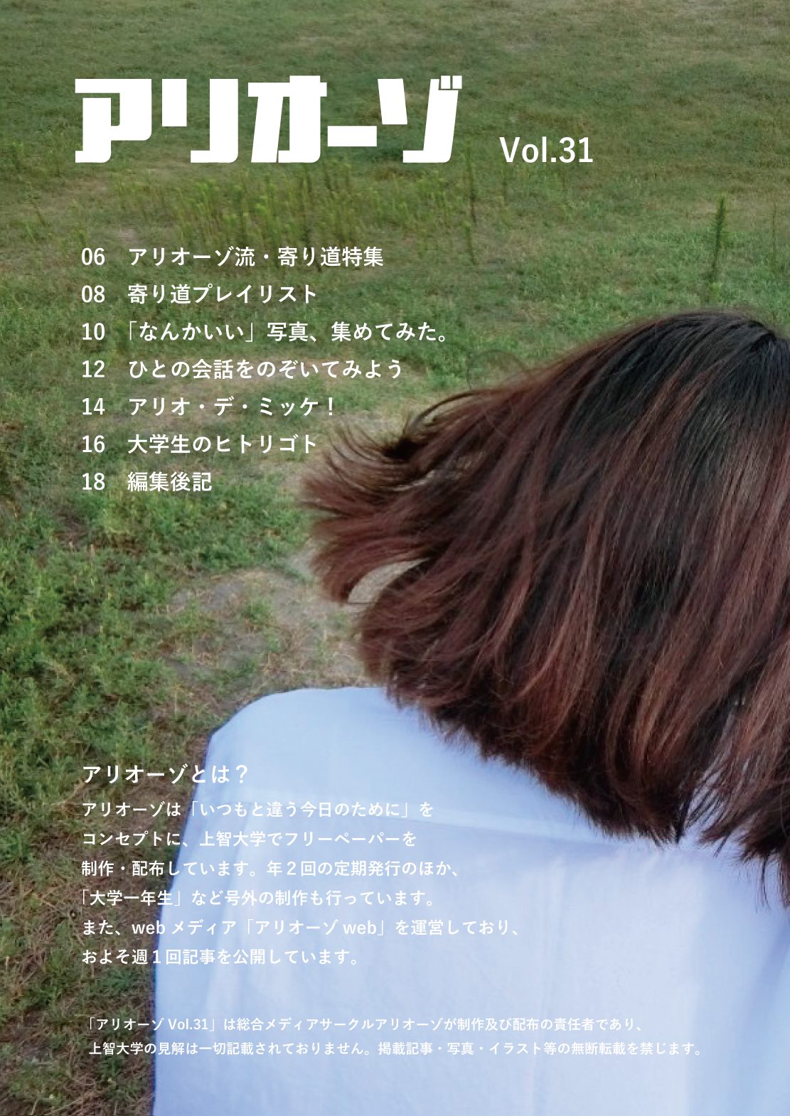 Vol.31 目次 アリオーゾ流・寄り道特集 寄り道プレイリスト 「なんかいい」写真、集めてみた。 ひとの会話をのぞいてみよう アリオ・デ・ミッケ! 大学生のヒトリゴト 編集後記 web限定 アリオ・デ・ミッケ! 答え Author てぃ うめ~お茶 View all posts